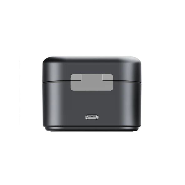 Lark M2S モバイルバージョン充電ケースは、送信機とモバイル受信機(USB-Cタイプ)をすっきり収納しながら同時に充電可能。ケースから取り出すと機器が自動的に電源オン、戻すとオフになるスマートな自動電源制御を搭載。USB-C入力で約1.5時間未満でフル充電が可能な高速チャージ性能。外出時でも安心のバッテリー補給手段として、実撮影の続行をサポート。