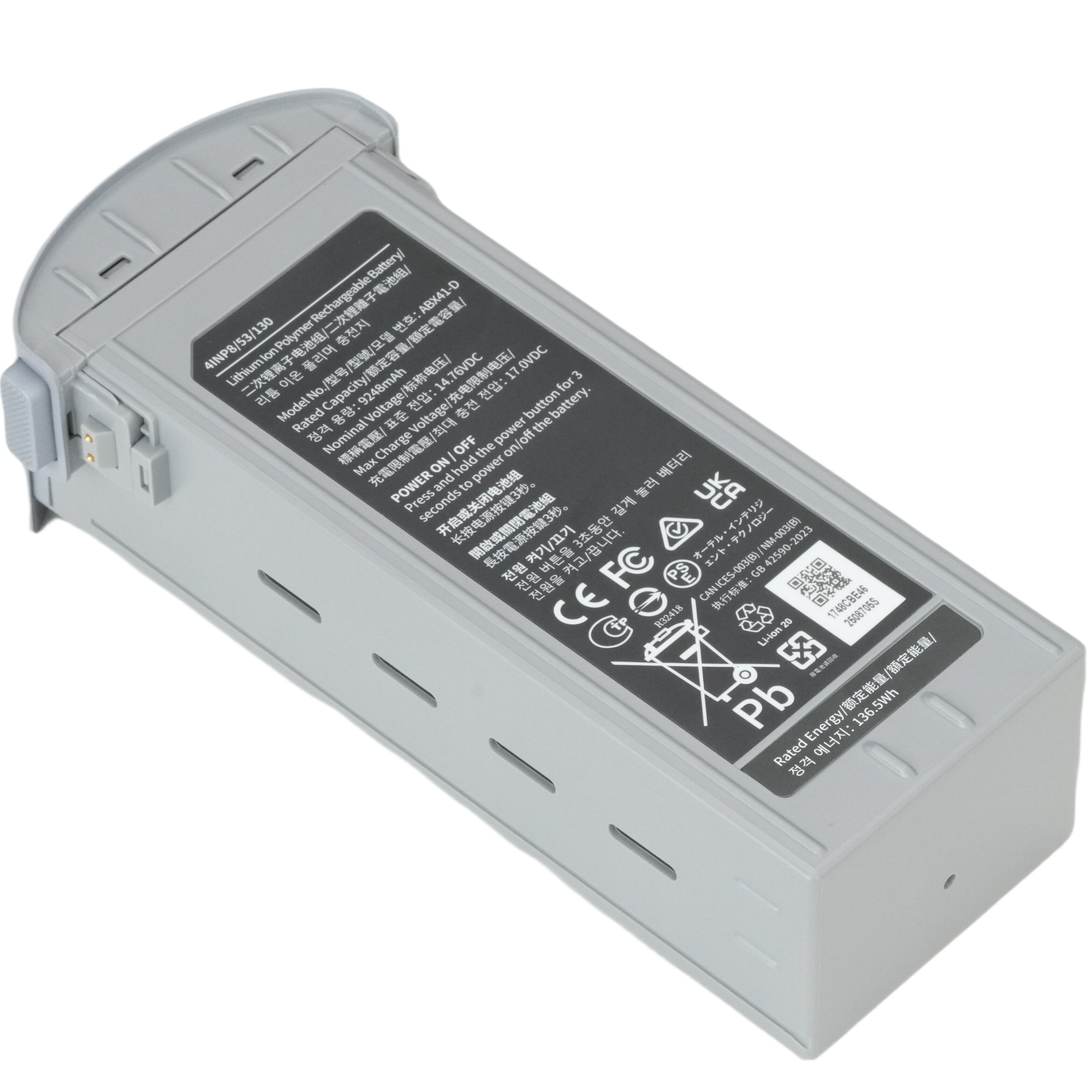 EVO Max スマートフライトバッテリーは、定格容量120 Whの高エネルギー密度ポリマーリチウムイオンセルを採用。積層セル技術により内部抵抗を大幅に低減し、バッテリーの有効容量を向上させたセルが、42分という優れたバッテリー寿命を実現します。
